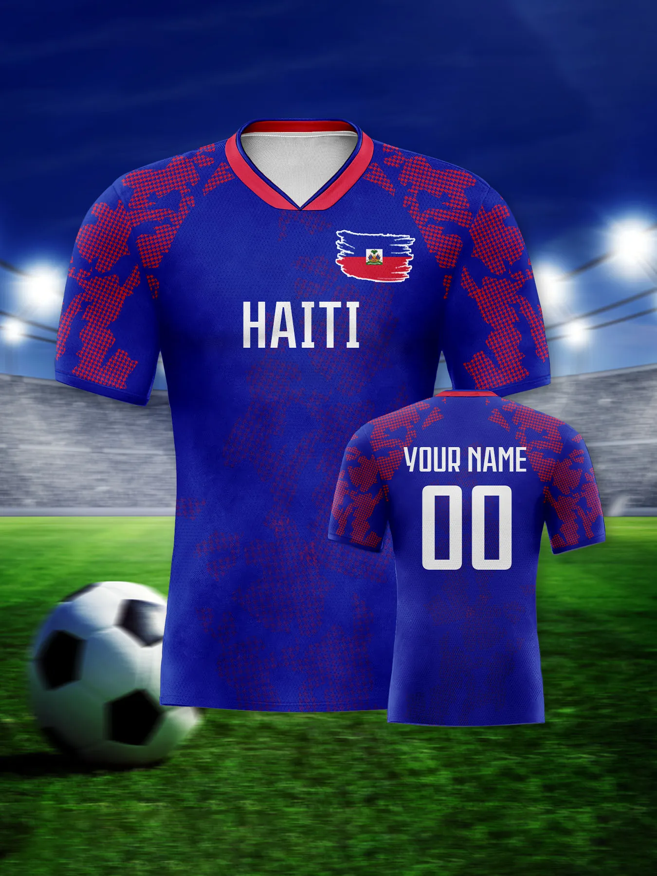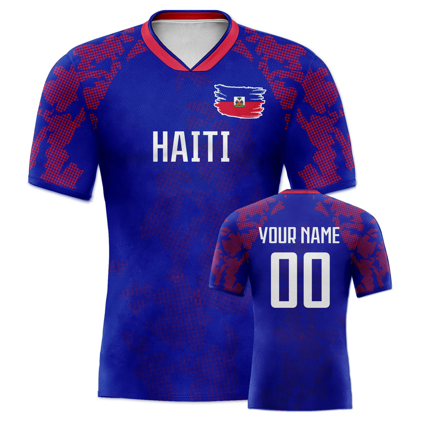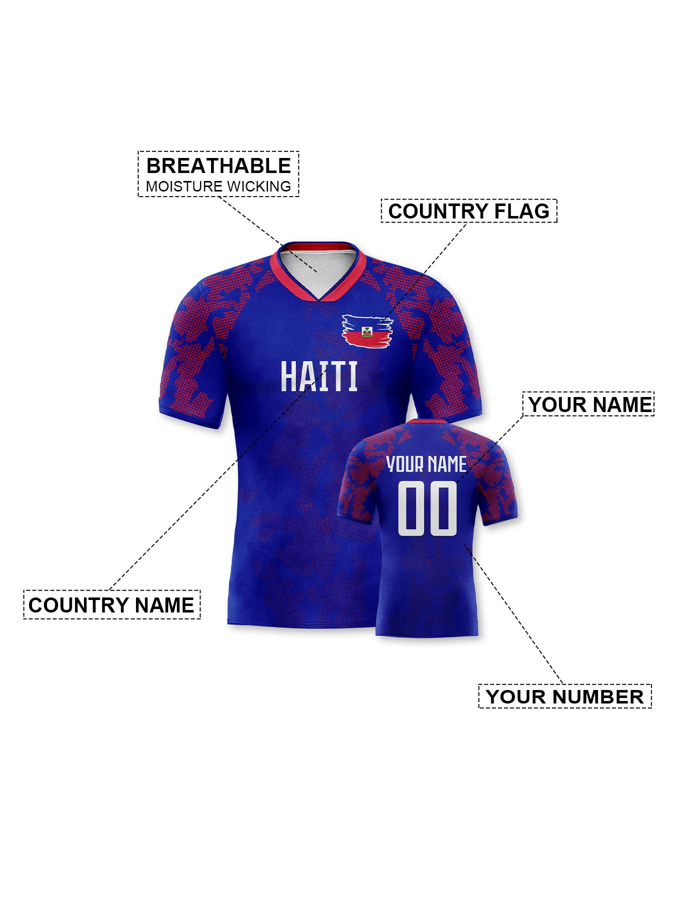 Custom Haiti Soccer Jersey Personalized Name Number, National Team Football Shirt Flag Design for Men Youth Women