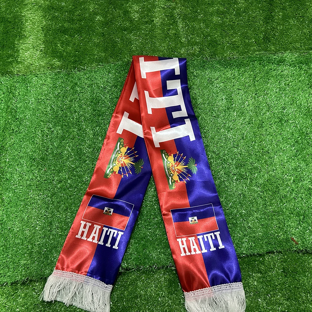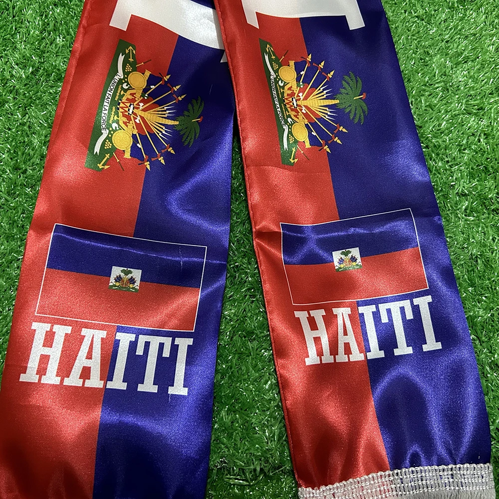 2026 Haiti Scarf 14x135cm Double-sided Printed Satin Haiti Flag Scarf Tassels Suitable for Football, Sports, Events