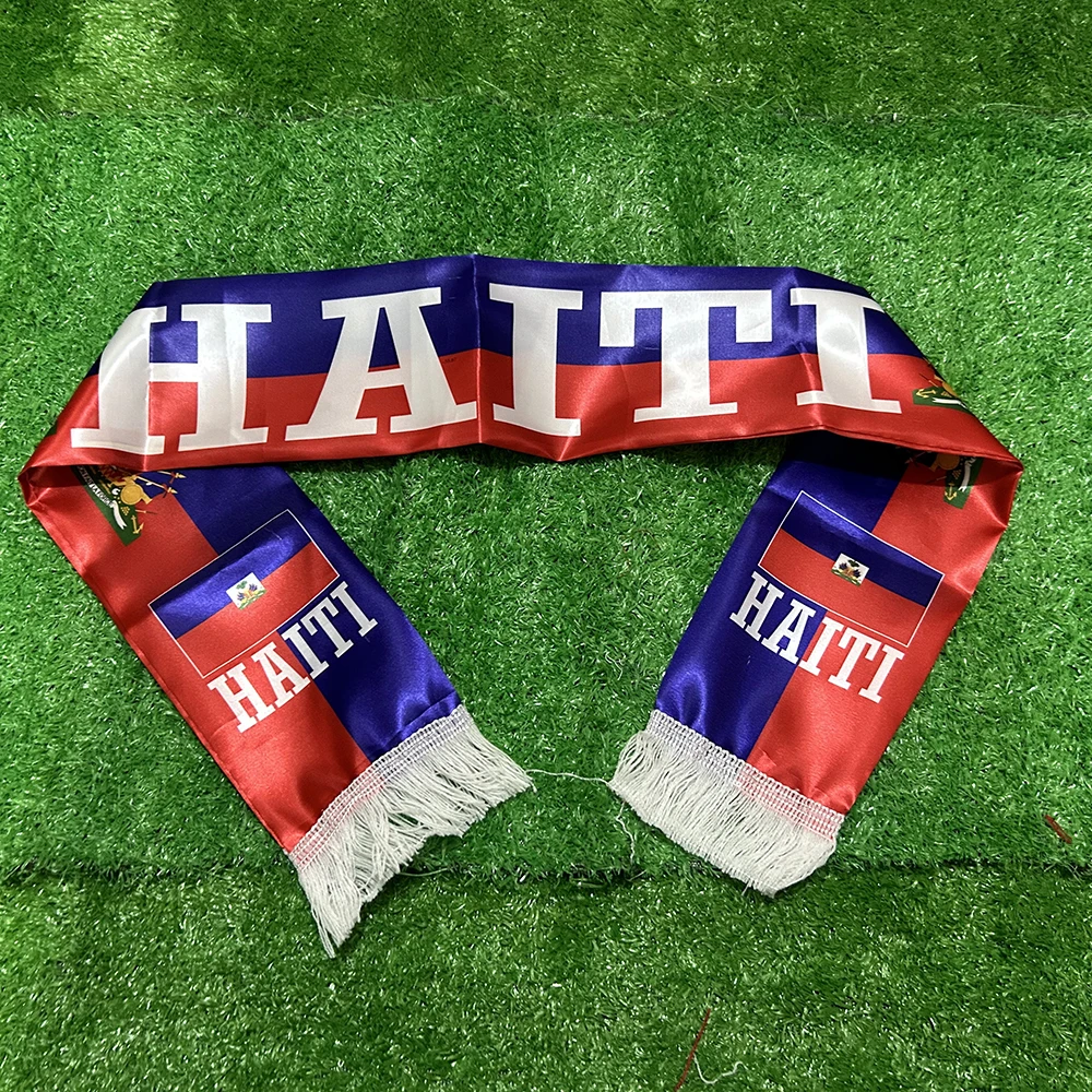 Haiti Scarf 14x135cm Double-sided Printed Satin Haiti Flag Scarf Tassels Suitable for 2026 Football cup, Sports, Events