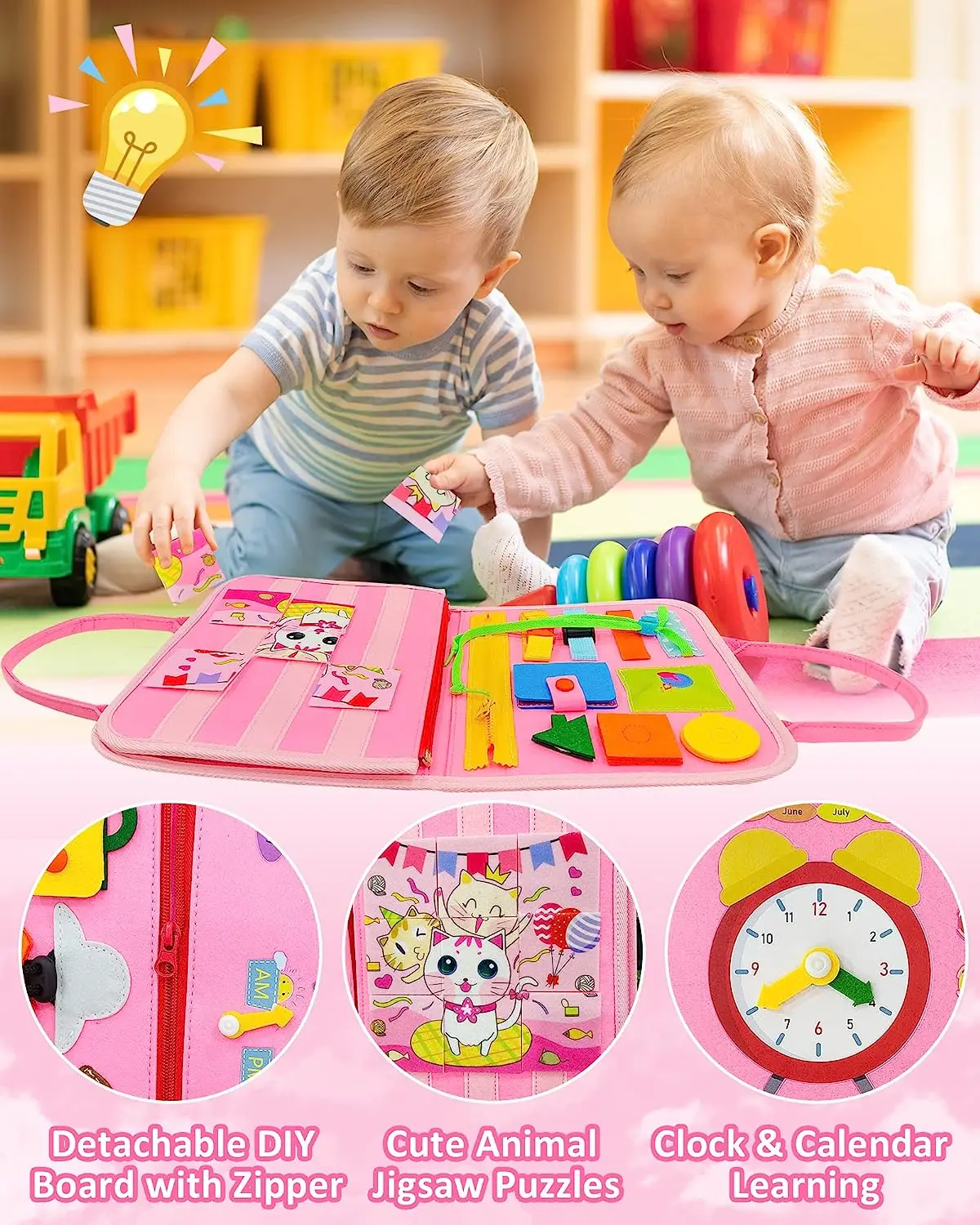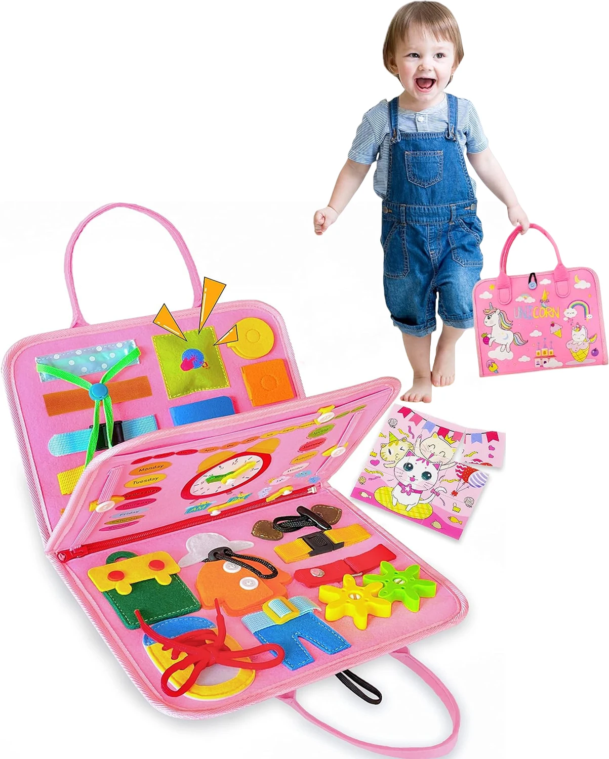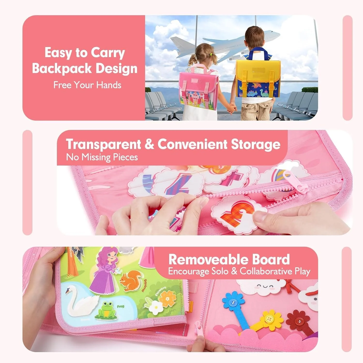 Toddlers Toys Busy Board Montessori Toys Busy Backpack Preschool Learning Activities Toys for Kids with Number,Shape,Dress Up