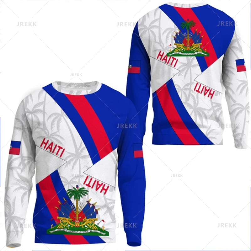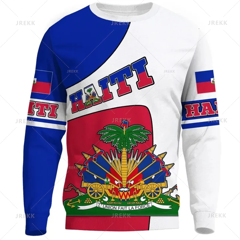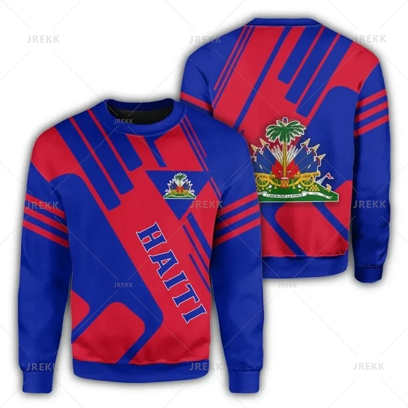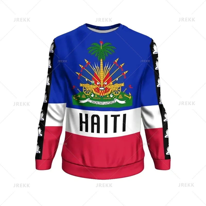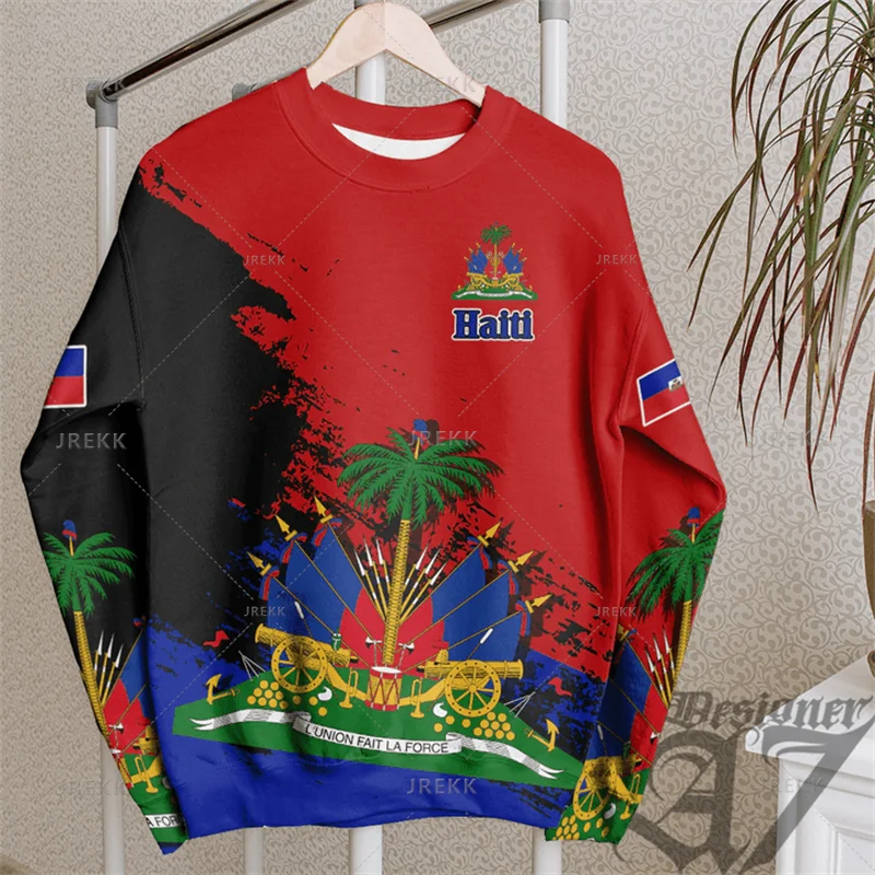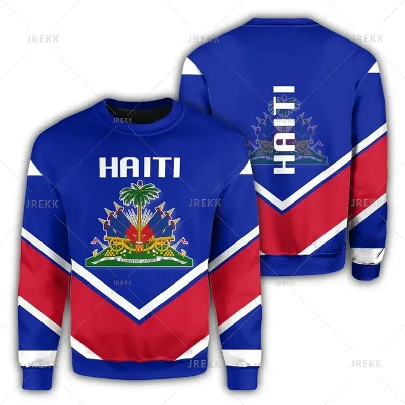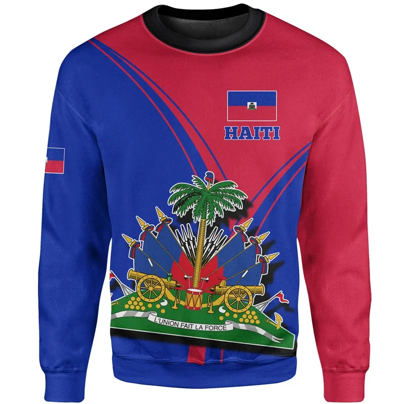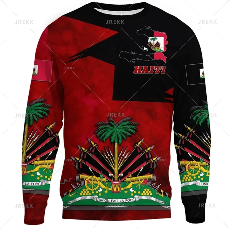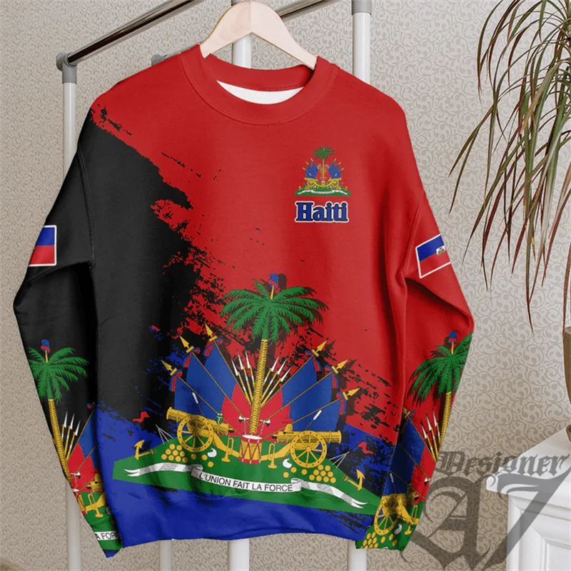 Vintage 3D Haiti Tribal Flag Printing Sweatshirts Haiti Coat Of Arms Graphic Round Neck Hoodie Fashion Streetwear Mens Clothing