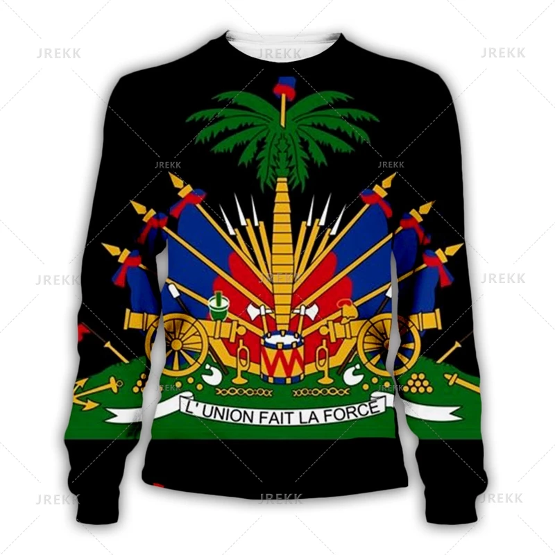 3D Printed Haiti Flag Coat Of Arms Men T Shirts Negre Marron Women Long Sleeve Tshirts Tops Kid Round Tee Shirt Men Clothes
